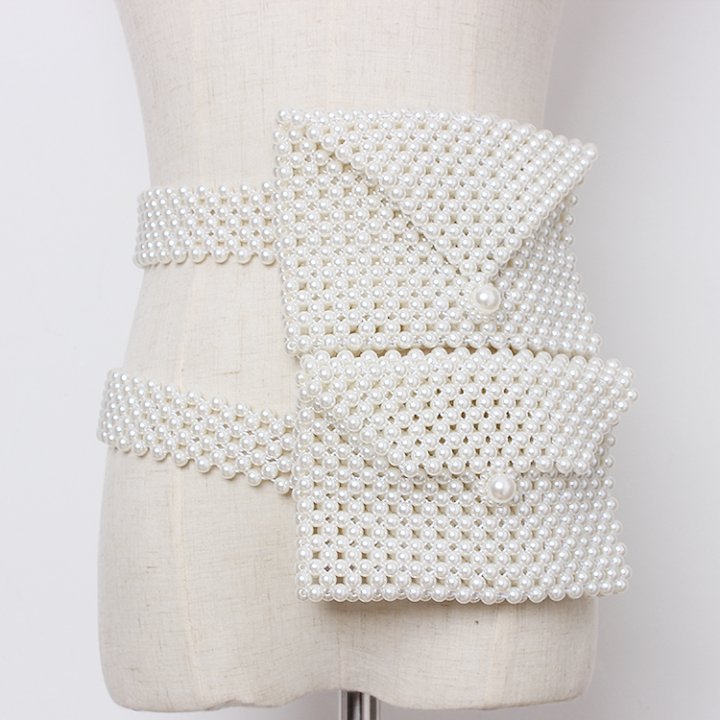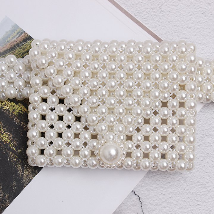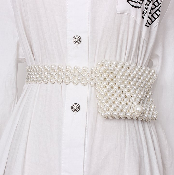 Be the first to review “Mini all-match elasticity waist-bag weave pearl belt”