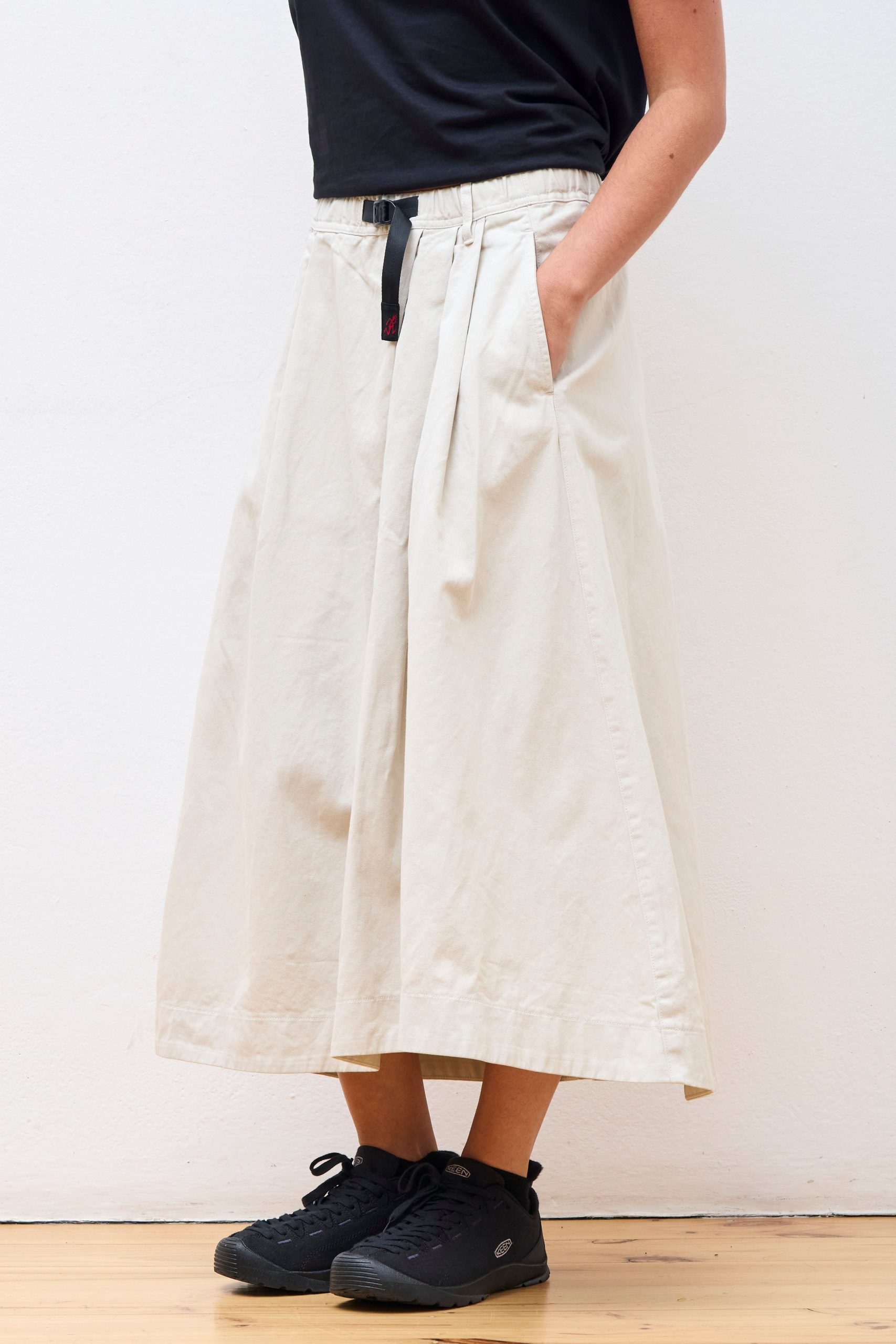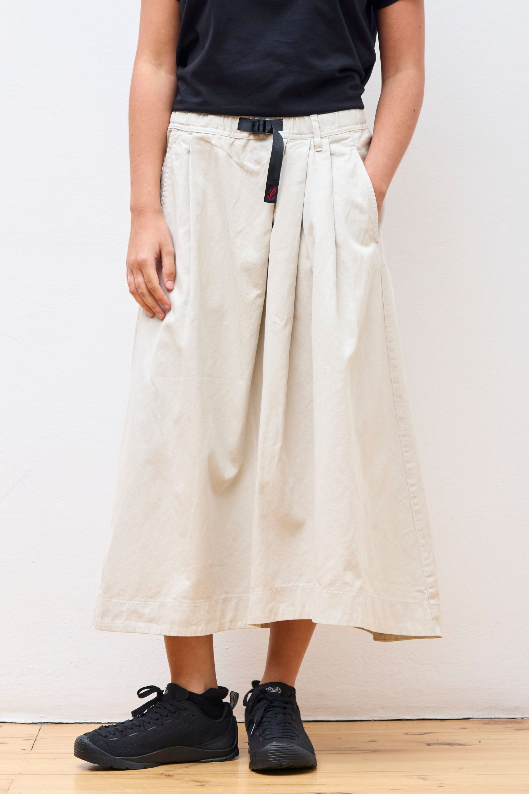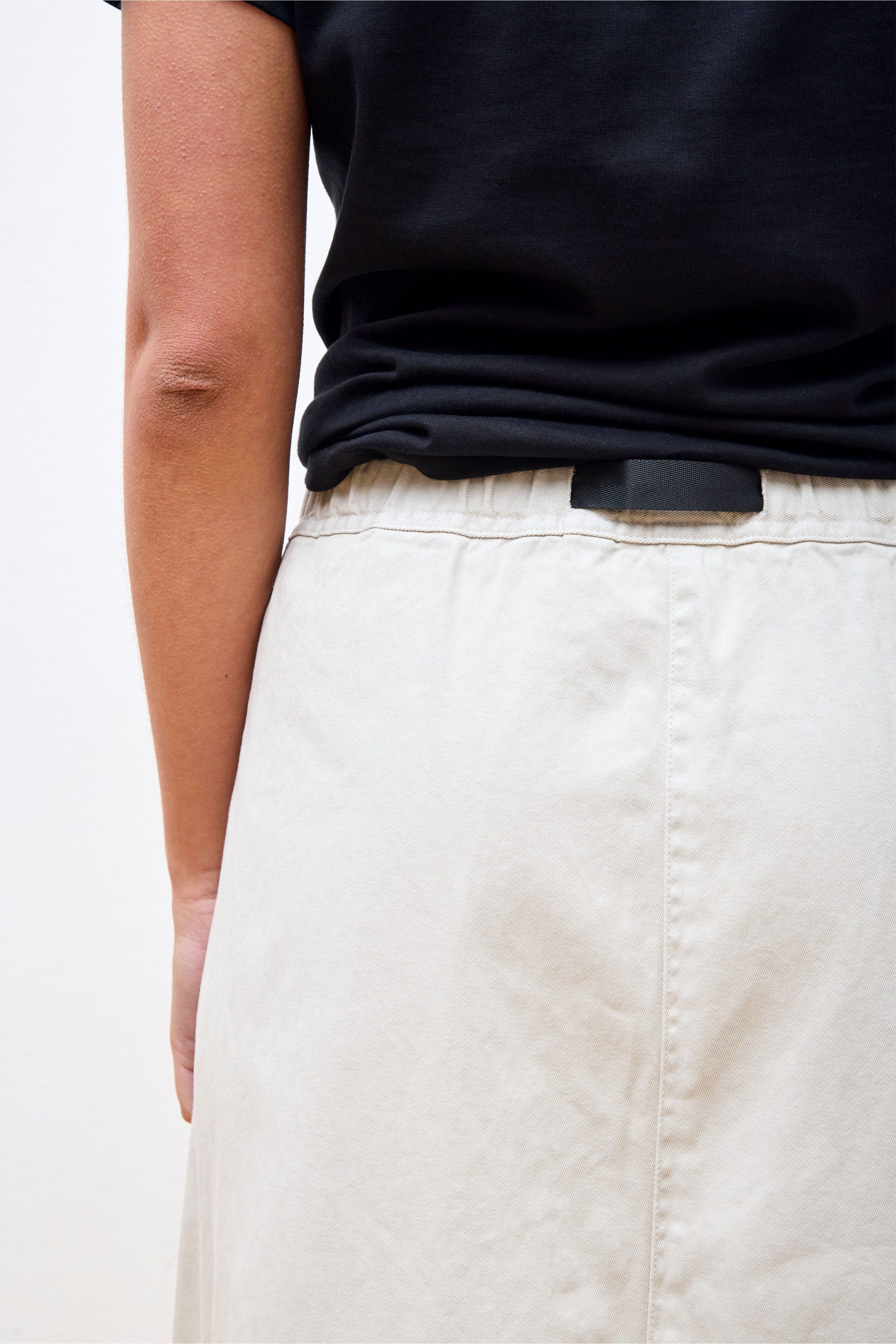 The Talecut Skirt in Dune Pigment is cut to a long and flared fit. crafted from a 9oz cotton canvas that has been pigment-dyed for a softer feel and a unique look. The skirt features random tucks that flow and flare elegantly. while hand pockets add a touch of functionality. Finished off with an elasticated waist with integrated belt for a secure but comfortable fit.